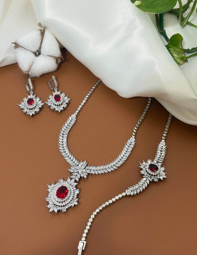 سرویس نقره سلطنتی یاقوت سرخ جواهری زنانه کد 60775