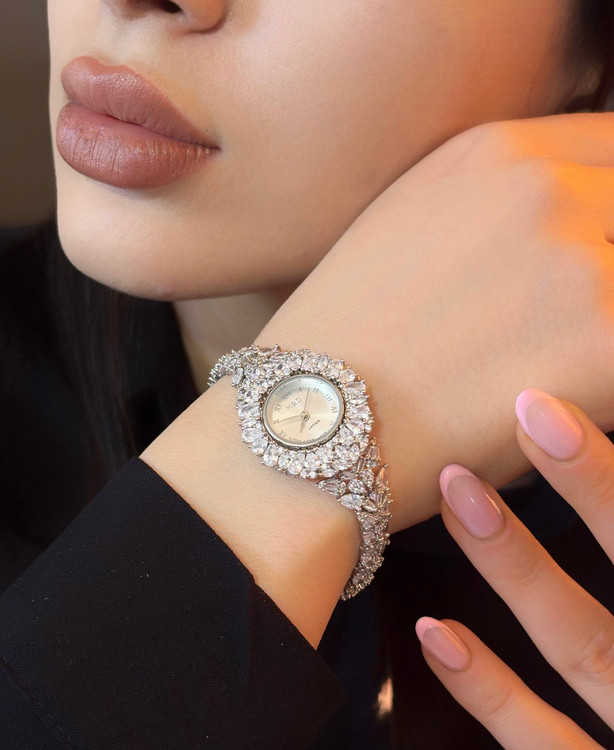 ساعت نقره جواهری زنانه کد 80366