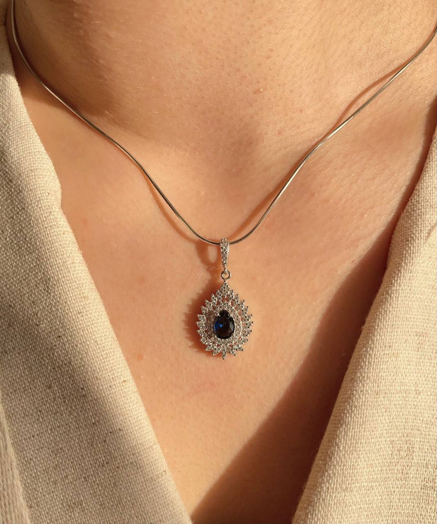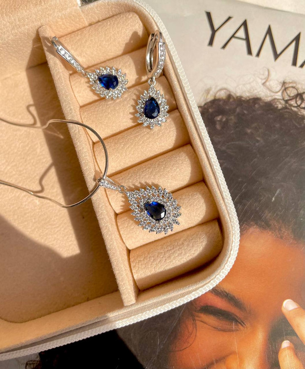 نیمست نقره سنگ یاقوت کبود جواهری کد 00065