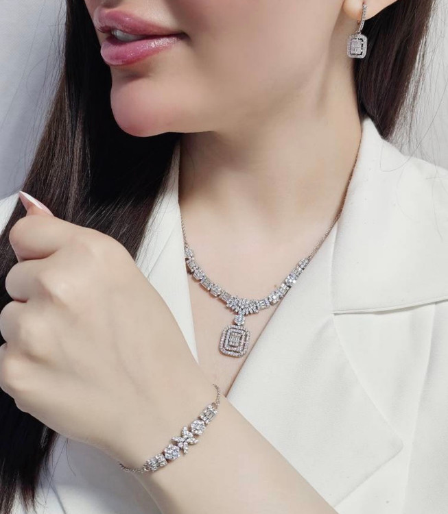 سرویس نقره زنجیری امرالدکات جواهری زنانه کد 60792