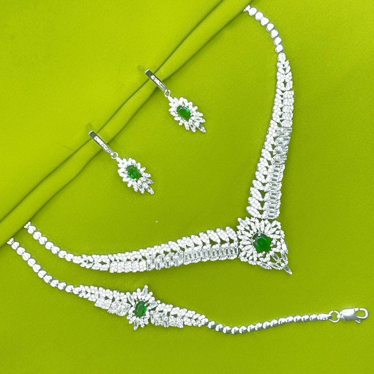 سرویس نقره زمرد جواهری زنانه کد 60079