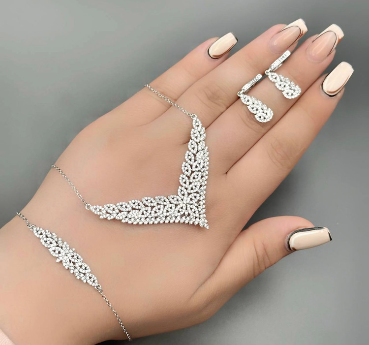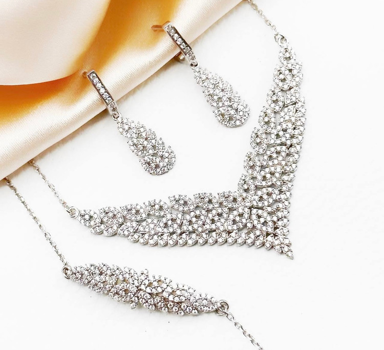 سرویس زنجیری نقره جواهری زنانه کد 60099