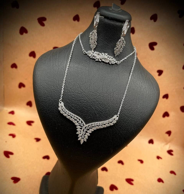 سرویس زنجیری نقره جواهری زنانه کد 60105
